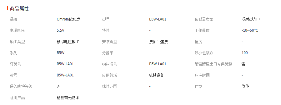檢測有無傳感器B5W-LA01反射型傳感器鏡面透明物體檢測傳感器