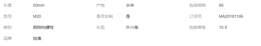 產(chǎn)品: 瀏覽次數(shù):290銘澳 10.9級(jí)鋼結(jié)構(gòu)扭剪大六角螺絲 m20鋼構(gòu)高強(qiáng)螺栓