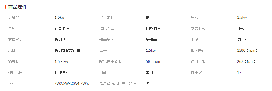 擺線(xiàn)針輪減速機(jī) 1.5kw臥式直連硬齒面單級(jí)速比行星擺線(xiàn)針輪減速機(jī) 詳細(xì)信息 ![]() 商品描述