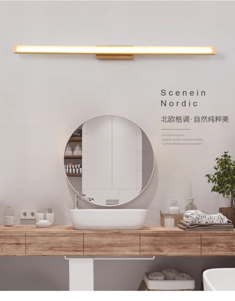北歐led鏡前燈實木鏡柜化妝梳妝臺防水防霧洗手間簡約現(xiàn)代日式燈