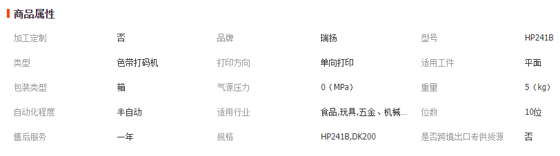 設(shè)備型號(hào):HP-241B型(可打印1到3行,送色帶一個(gè))