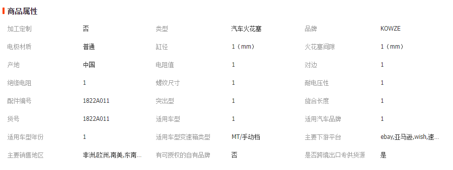 產(chǎn)品屬性信息 |