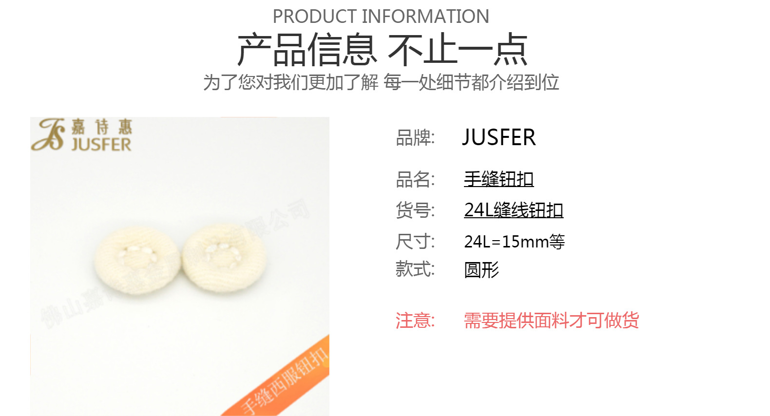 嘉詩惠廠家直供圓形包布鈕扣西裝適用手工縫線紐扣 包布鈕扣