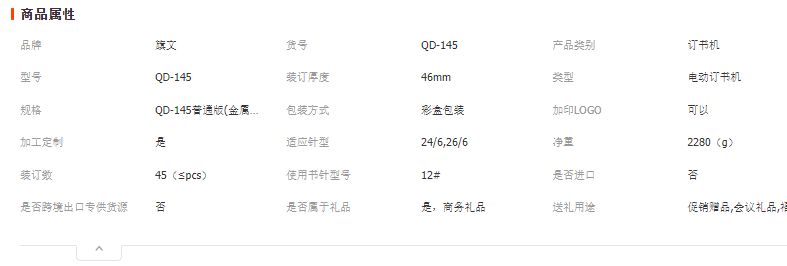 產(chǎn)品: 瀏覽次數(shù):355旗文電動訂書機QD-145辦公商務(wù)工廠專用裝訂45張自動電 動訂書器