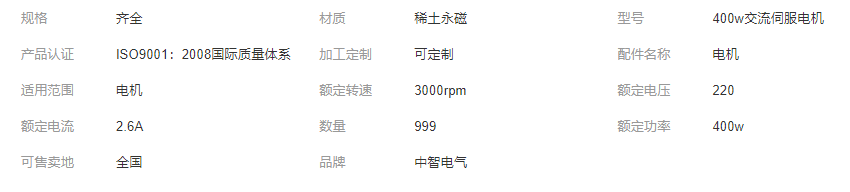 400w交流伺服電機60法蘭性能穩(wěn)定 中智電氣生產