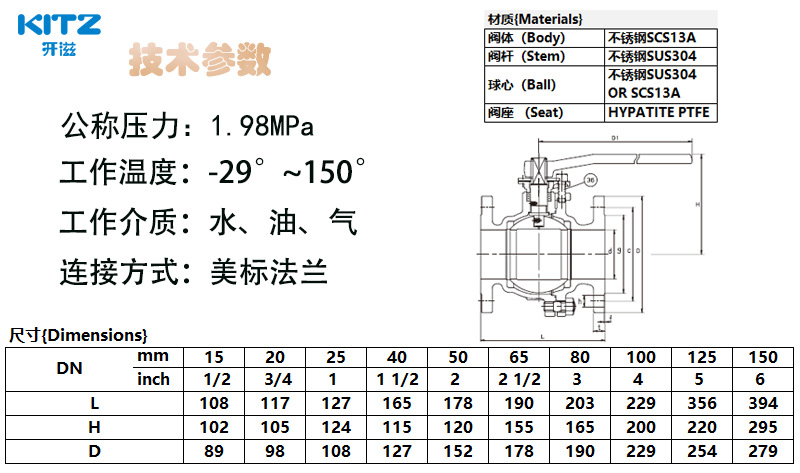 KITZ日本北澤開滋二片式手動(dòng)304不銹鋼法蘭球閥門150UTB廠家直銷 詳細(xì)信息 ![]() 商品描述