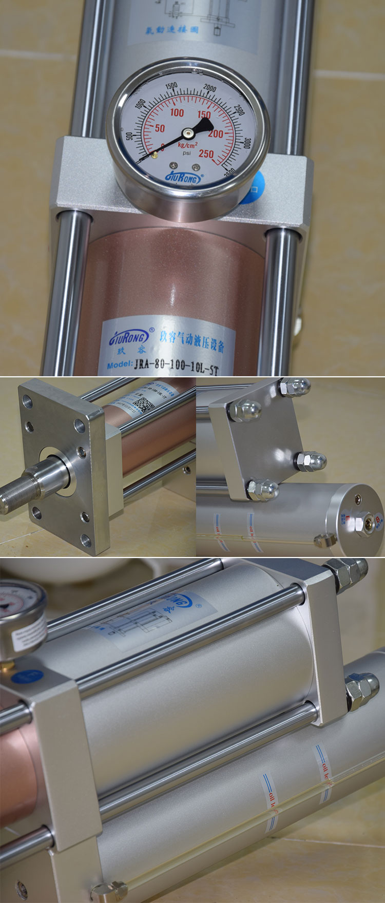 JRA標(biāo)準(zhǔn)型氣液增壓缸采用進(jìn)口英國(guó)HALLITE油封,日本NOK氣封,臺(tái)灣內(nèi)電油缸等配件精密制造,具有出力大、速度快傳動(dòng)穩(wěn)定、使用維護(hù)簡(jiǎn)便、低故障、高效節(jié)能、使用壽命長(zhǎng)等等特點(diǎn),為玖容廠家出貨量最大的一款高性價(jià)比氣液增壓缸產(chǎn)品。