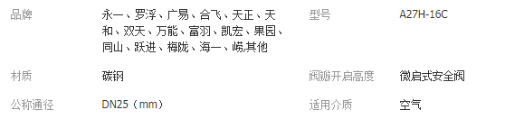 產(chǎn)品: 瀏覽次數(shù):1172A27H-16C DN25 鍋爐安全閥 法蘭式安全閥 彈簧式安全閥 廣易