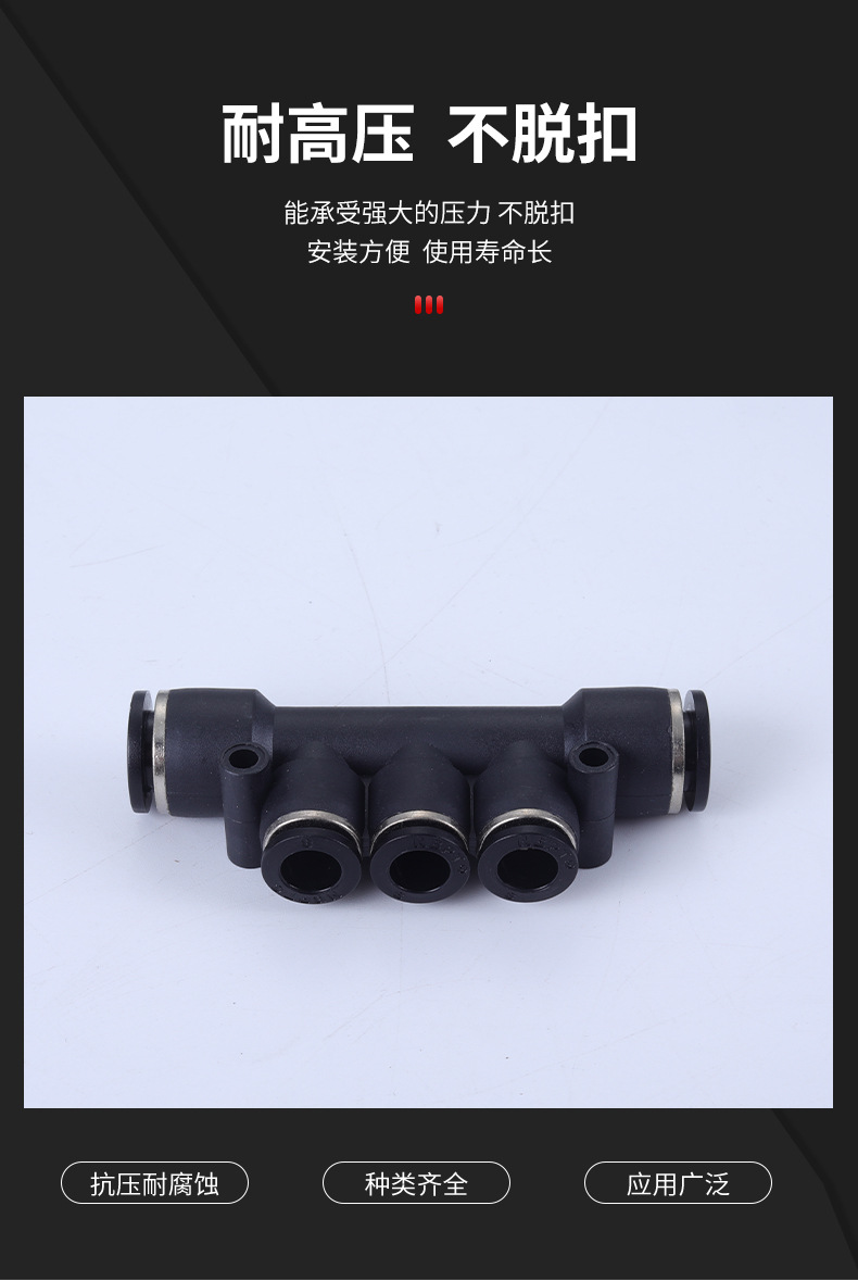 PK快接頭塑料五通氣動接頭耐壓PE尼龍管6-12mm插氣管快插接頭批發(fā)
