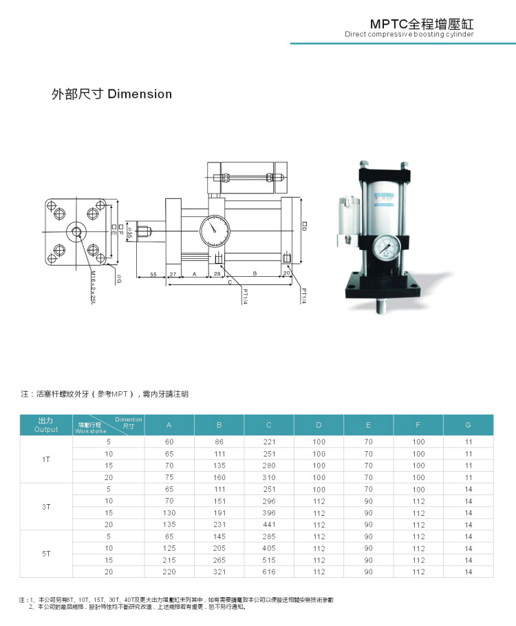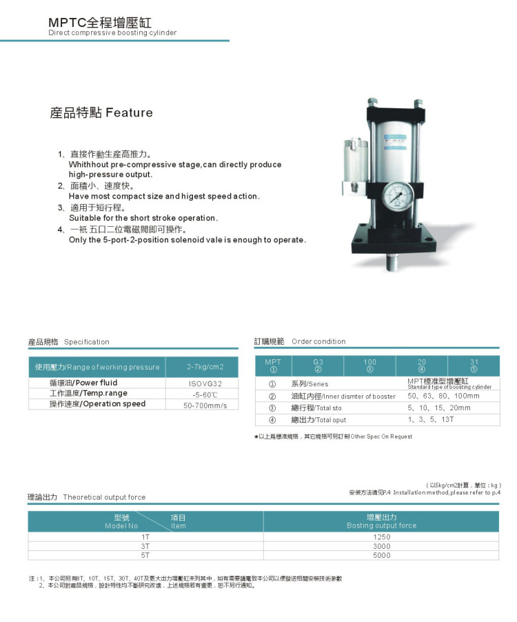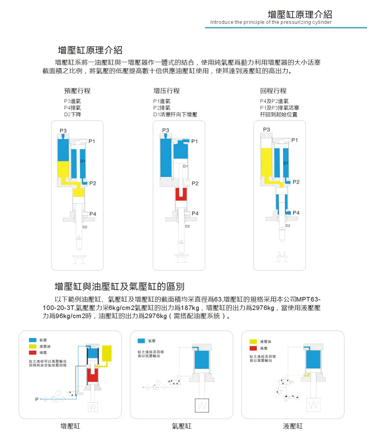 為避免缸在增壓時(shí)動(dòng)作的壓力過(guò)大破壞您的模具或工件,敬請(qǐng)?jiān)谠鰤焊自鰤憾芜M(jìn)入口處加裝一減壓閥,以便能有效保護(hù)您的產(chǎn)品。