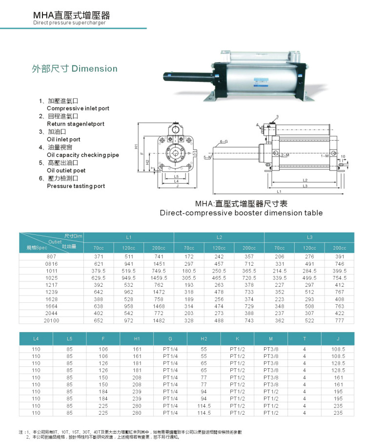 在將增壓缸接入氣路前,敬請(qǐng)先將管路及元件內(nèi)的灰塵等雜物去除,以免降低增壓缸的使用壽命。