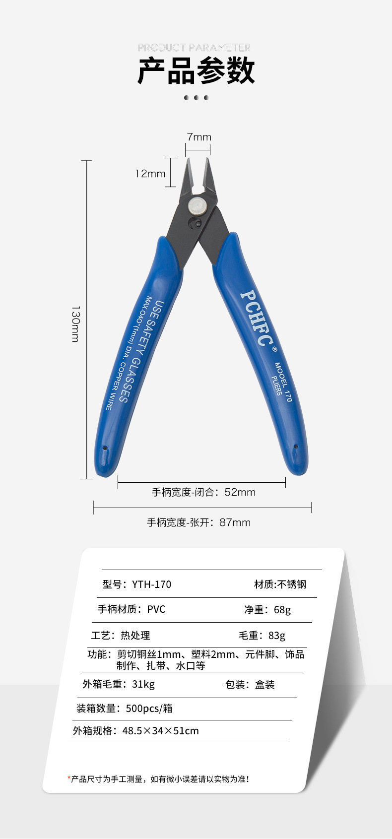 PCHFC-170剪鉗工業(yè)級(jí)斜口鉗高達(dá)模型水口鉗DIY手工塑料披鋒電子鉗