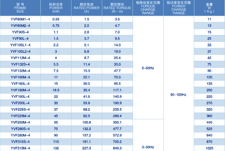 額定功率:0.55-315kw 額定電壓:220V、380V