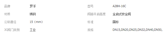 A28H-16C彈簧式安全閥公稱通徑DN15DN20DN32DN40DN50DN65DN8