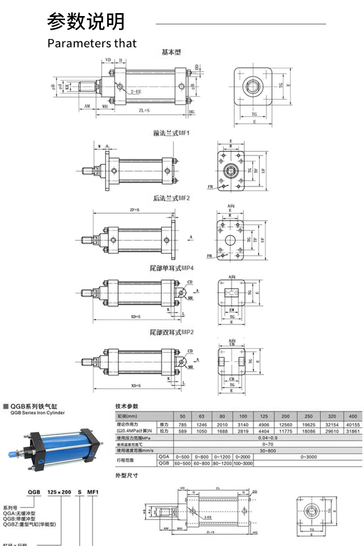 廠家直供重型QGB氣缸系列 大推力鐵制氣缸 可調(diào)行程大缸徑可定