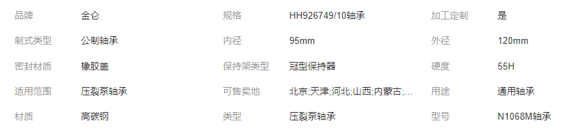 23240CA/W33軸承 N1068M軸承 HH926749/10軸承 壓裂泵軸承