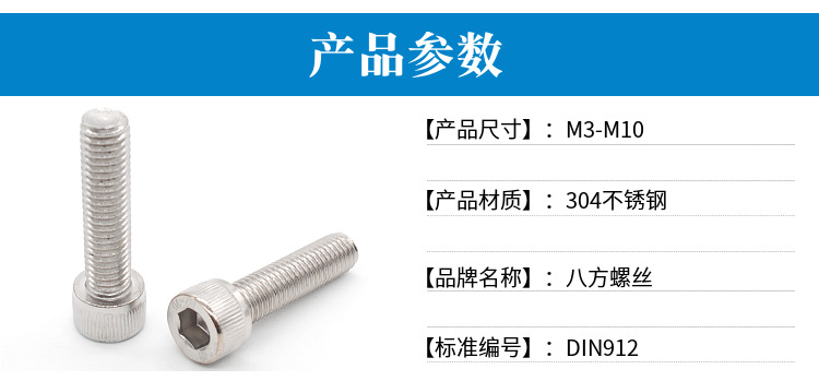 【304內六角螺絲DIN912】不銹鋼圓柱頭內六角螺釘M3M4M5M6M8M 10