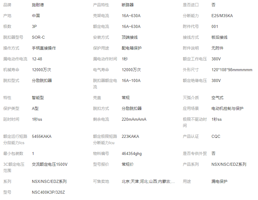 施耐德塑殼斷路器NSC系列NSC400K 3P/320Z殼架電流400A/3P/4P