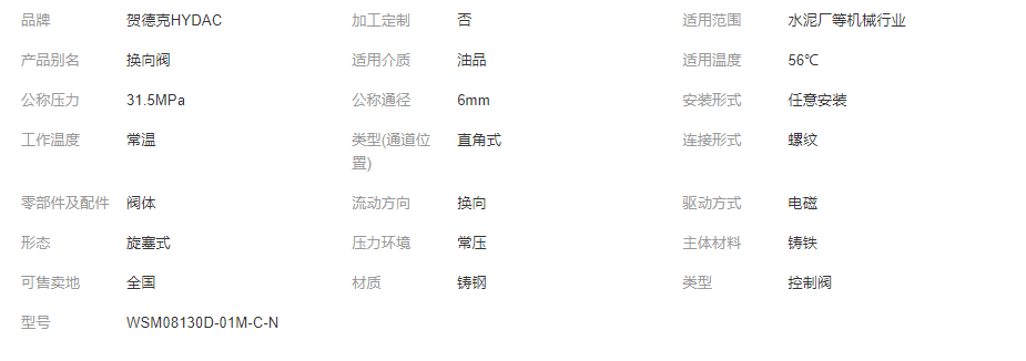 產(chǎn)品: 瀏覽次數(shù):436hydac賀德克WSM08130D-01M-C-N插裝閥 球閥有庫(kù)存