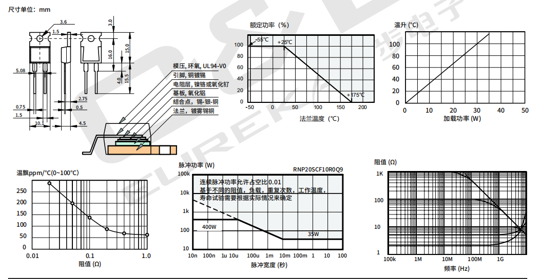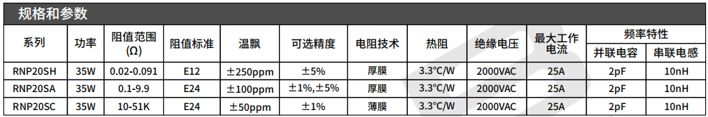 系列:RNP20S(20mΩ-510KΩ 35W ±1% ±50ppm 3.3℃/W TO-220)