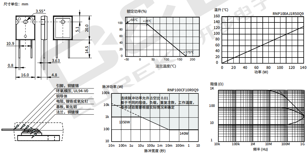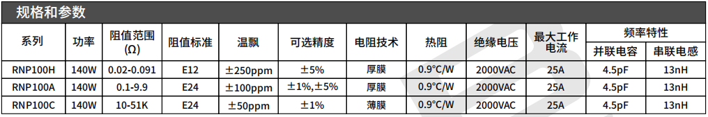 系列:RNP100(20mΩ-510KΩ 140W ±1% ±50ppm 0.9℃/W TO-247)