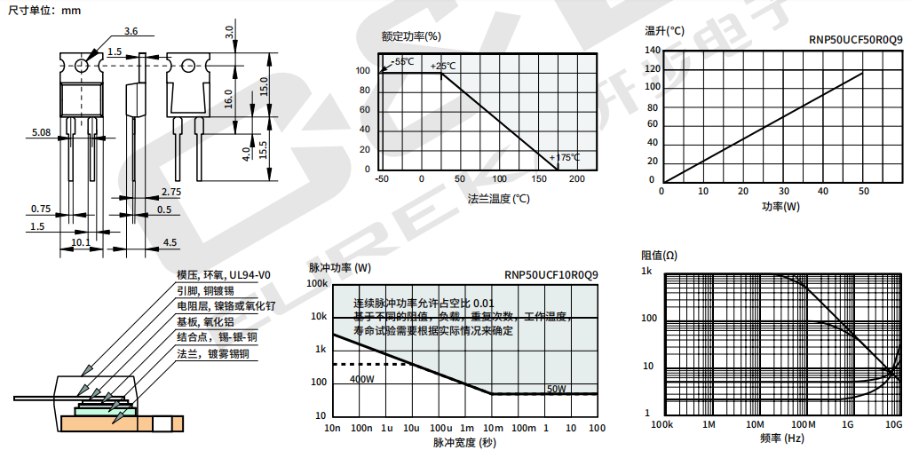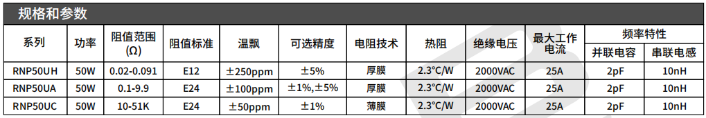 系列:RNP50U(20mΩ-510KΩ 50W ±1% ±50ppm 2.3℃/W TO-220)