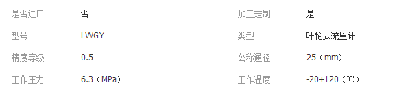 25mm,普通渦輪流量范圍1~10m3/h 寬量程渦輪為0.5~10m3/h |