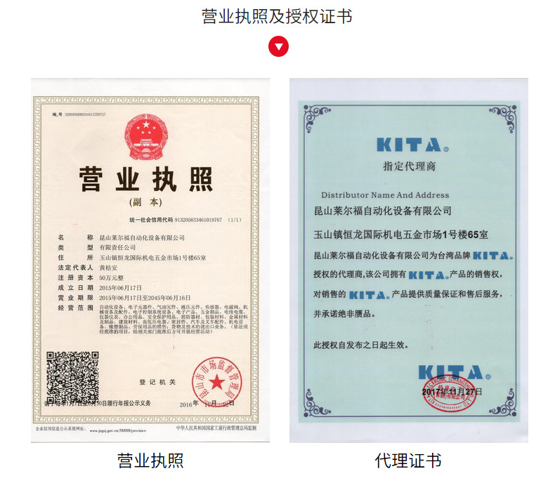 臺灣經(jīng)登企業(yè)股份有限公司(KITA SENSOR TECH. CO., LTD.),成立于1988年10月,公司位于新北產(chǎn)業(yè)園區(qū)內(nèi),主要營業(yè)項(xiàng)目為:專業(yè)生產(chǎn)空、油壓缸用之磁性傳感器 (Magnetic Sensor)、壓力傳感器 (Pressure Sensor)、環(huán)形磁鐵及空油壓相關(guān)之零配件。昆山萊爾福自動(dòng)化設(shè)備有限公司為臺灣品牌KITA授權(quán)的代理商。