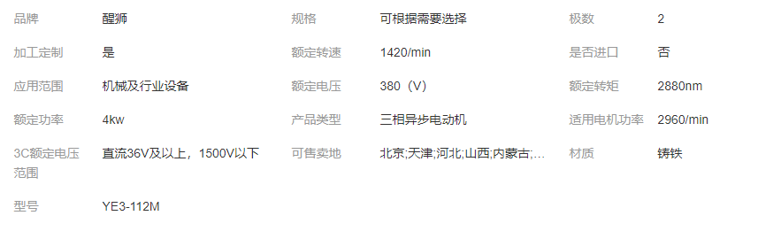 批發(fā)三相異步電動機 YE3-112M-4-2極國標馬達電機 4KW機床電機