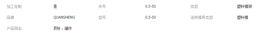 銓晟科技可按客戶要求參照DME, DME-EOC, HASCO,CUMSA, STRACK,JTD, RABOURDIN, PCS, PROGRESSIVE, MISUMI, DMS, SUPERIOR,OPITZ, STAUBLI, FUTABA, PUNCH, SIDECO, PEDROTTI, VAP,ANKYO,UDEBA,IEM,DANLY, Lmina , LEMPCO, MEUSBURGER,NORMALIEN等世界品牌標準進行加工、檢驗。并能依國標GB日標JIS德標DIN美標AISI等國際行業(yè)標準制作。產品精密:公差 ± 0.001mm同軸度及真圓度 0.002 mm表面光潔度RA0.025加工外徑0.2MM以上長度6000MM任意公差尺寸歡迎訂制。