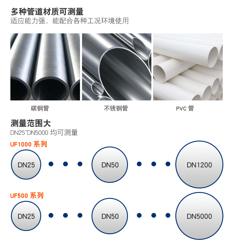 規(guī)格【UF1000主機(jī)】DN25~DN1000mm,不含傳感器,【UF500主機(jī)】DN25~DN3600mm,不含傳感器,【加價】CD1 常溫外夾流量傳感器,【加價】W1 插入式流量傳感器,【加價】C1 常溫外夾傳感器(高精度),【加價】8G SD存儲卡,【加價】冷量/熱量功能