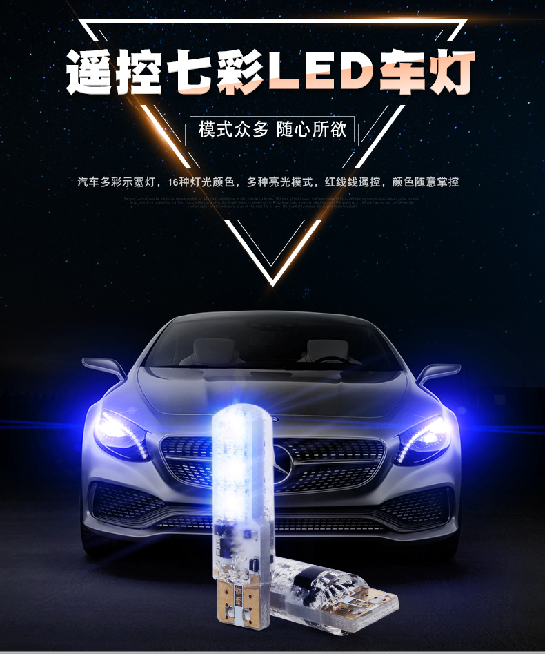 新款 RGB 帶遙控 T10-6smd 5050硅膠 汽車示寬燈 爆閃燈 氣氛燈 對裝