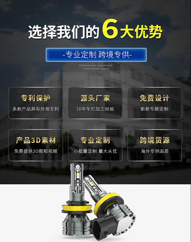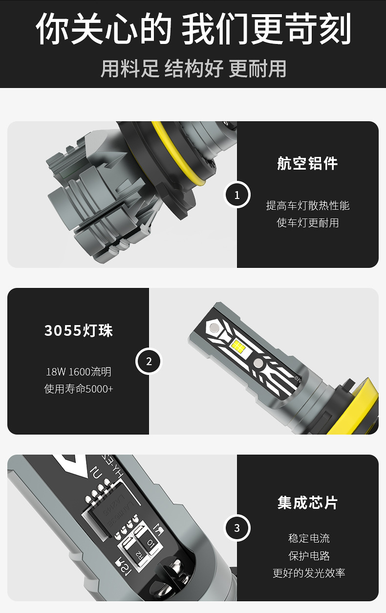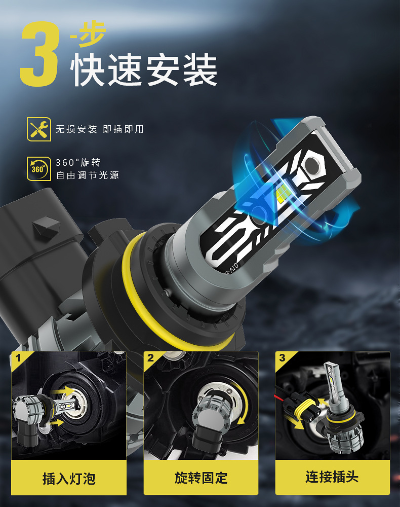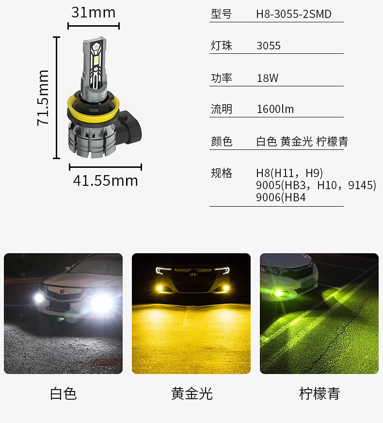 跨境新款汽車用H8 H11 H9 led燈泡3055 1600lm青檸檬黃金光前霧燈