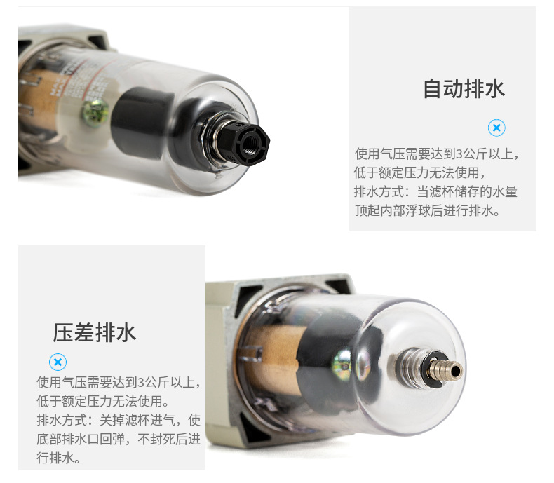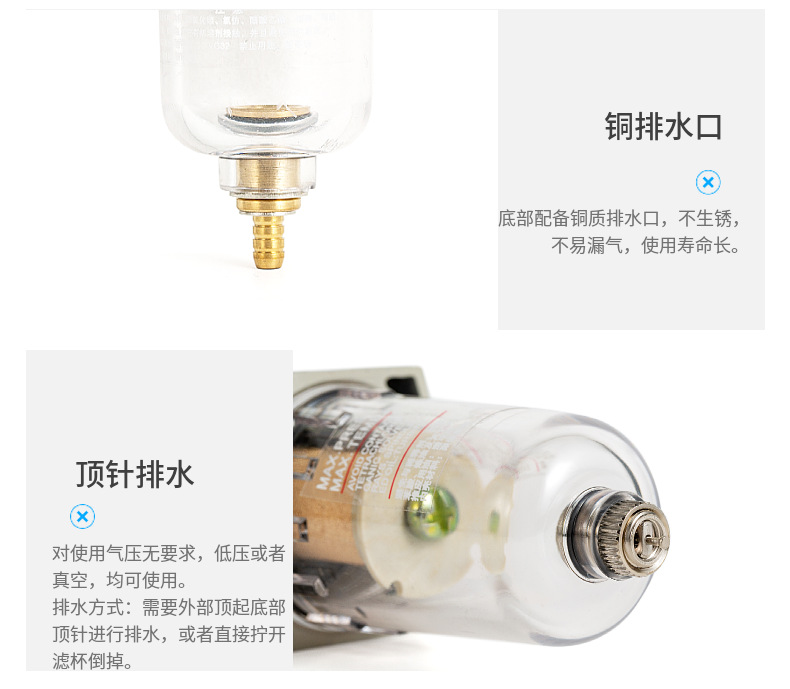產品: 瀏覽次數(shù):376SMC型AF2000-02過濾器氣泵2分空氣自動排水油水分離器美容儀濾杯