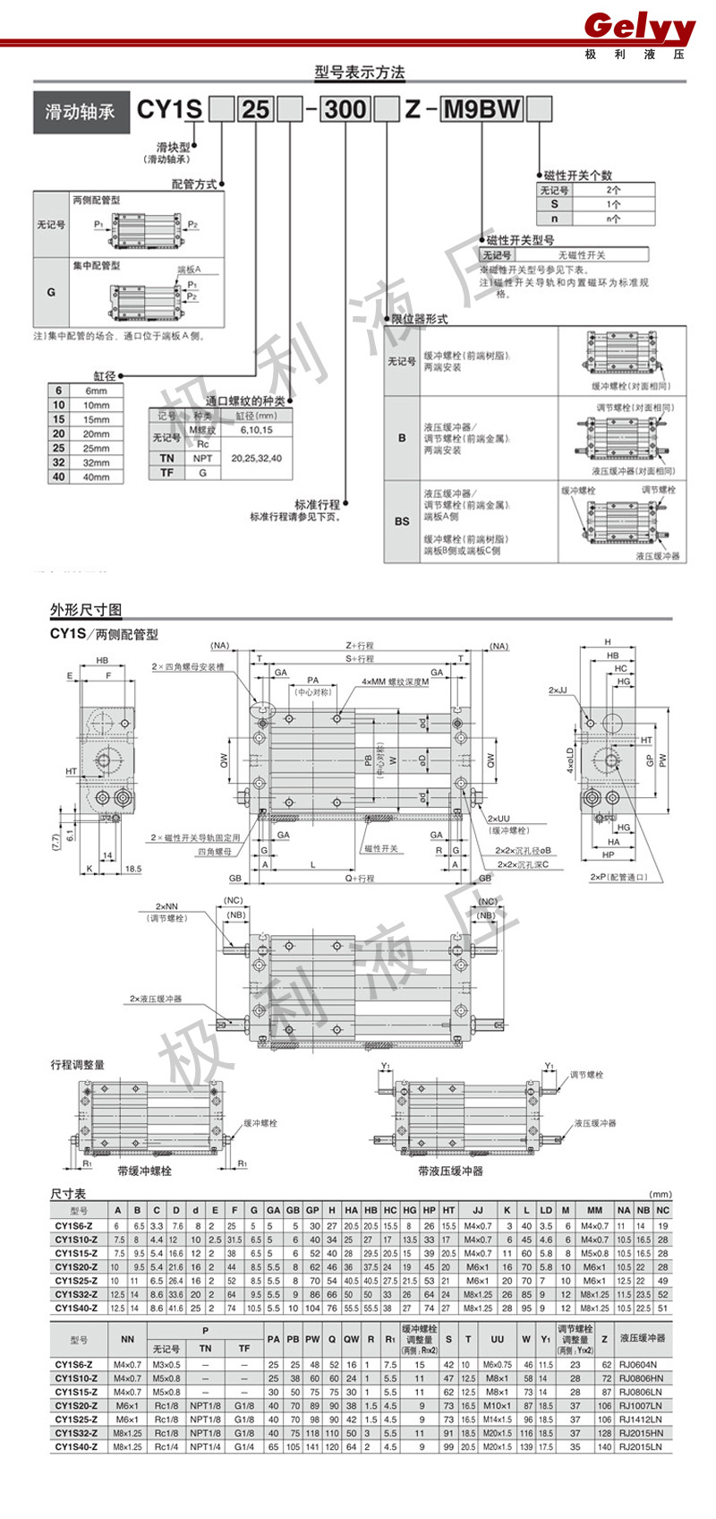 型號(hào)CY1S6/10/15/20/25/32/40H