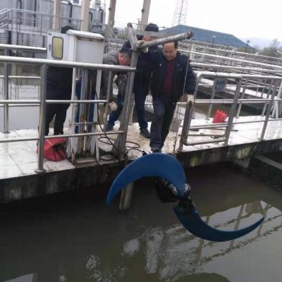 江蘇杜安環(huán)保低速潛水推流器應用在水解酸化池,進行水平推流。推進器應能在電機全浸沒條件下連續(xù)運行、間歇運行和長期停止狀態(tài)后恢復運行,在整個運行過程中須保持平穩(wěn),池底水平流速不小于0.3 m/s。