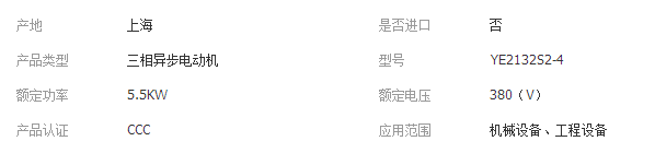 >產(chǎn)品供應(yīng)>電動工具>發(fā)動機(jī)>交流發(fā)電機(jī)及相關(guān)零件>現(xiàn)貨供應(yīng) 5.5KW 380v 4級 YE2132S2-4 三相異步電動機(jī) 電氣機(jī)械設(shè)備銷售;五金產(chǎn)品批發(fā);水上運(yùn)輸設(shè)備批發(fā);機(jī)電設(shè)備安裝服務(wù);通用機(jī)械設(shè)備銷售;家用電器批發(fā);電氣設(shè)備批發(fā);