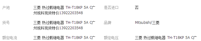 | 三菱 熱過載繼電器 TH-T18KP 5A C廣州觀科現(xiàn)貨特價13922203548 |