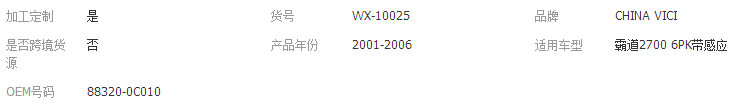 立即發(fā)布求購意向本網(wǎng)頁所展示的有關(guān)【10S17C豐田霸道2700 6PK帶感應(yīng)汽車空調(diào)壓縮機 冷氣泵_ HVAC汽車_廣州偉希汽車空調(diào)配件有限公司】的信息/圖片/參數(shù)等由全球零部件網(wǎng)的會員【廣州偉希汽車空調(diào)配件有限公司】提供,由全球零部件網(wǎng)會員【廣州偉希汽車空調(diào)配件有限公司】自行對信息/圖片/參數(shù)等的真實性、準(zhǔn)確性和合法性負(fù)責(zé),本平臺(本網(wǎng)站)僅提供展示服務(wù),請謹(jǐn)慎交易,因交易而產(chǎn)生的法律關(guān)系及法律糾紛由您自行協(xié)商解決,本平臺(本網(wǎng)站)對此不承擔(dān)任何責(zé)任。您在本網(wǎng)頁可以瀏覽【10S17C豐田霸道2700 6PK帶感應(yīng)汽車空調(diào)壓縮機 冷氣泵_ HVAC汽車_廣州偉希汽車空調(diào)配件有限公司】有關(guān)的信息/圖片/價格等及提供【10S17C豐田霸道2700 6PK帶感應(yīng)汽車空調(diào)壓縮機 冷氣泵_ HVAC汽車_廣州偉希汽車空調(diào)配件有限公司】的商家公司簡介、聯(lián)系方式等信息。