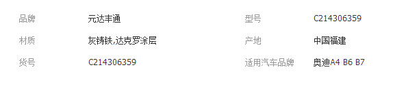 立即發(fā)布求購意向本網(wǎng)頁所展示的有關(guān)【048-前制動盤 奧迪A4/B6/B7前剎車碟 汽車配件廠家批發(fā)直銷_剎車/制動電阻_福建省元達豐通汽車配件貿(mào)易有限公司】的信息/圖片/參數(shù)等由全球零部件網(wǎng)的會員【福建省元達豐通汽車配件貿(mào)易有限公司】提供,由全球零部件網(wǎng)會員【福建省元達豐通汽車配件貿(mào)易有限公司】自行對信息/圖片/參數(shù)等的真實性、準確性和合法性負責(zé),本平臺(本網(wǎng)站)僅提供展示服務(wù),請謹慎交易,因交易而產(chǎn)生的法律關(guān)系及法律糾紛由您自行協(xié)商解決,本平臺(本網(wǎng)站)對此不承擔(dān)任何責(zé)任。您在本網(wǎng)頁可以瀏覽【048-前制動盤 奧迪A4/B6/B7前剎車碟 汽車配件廠家批發(fā)直銷_剎車/制動電阻_福建省元達豐通汽車配件貿(mào)易有限公司】有關(guān)的信息/圖片/價格等及提供【048-前制動盤 奧迪A4/B6/B7前剎車碟 汽車配件廠家批發(fā)直銷_剎車/制動電阻_福建省元達豐通汽車配件貿(mào)易有限公司】的商家公司簡介、聯(lián)系方式等信息。