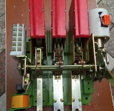 斷路器為立體布置形式,觸頭系統(tǒng)、操作機(jī)構(gòu)均安裝在一塊鐵制框架上。上部裝有滅弧系統(tǒng),右面裝有手動(dòng)和電動(dòng)操作機(jī)構(gòu)。有“通”、“斷”指示及手動(dòng)“合”、“分”,按鈕。右側(cè)面裝有分勵(lì)脫扣器、欠電壓脫扣器。速飽和電流互感器或電流電壓變換器套在下母線上。欠電壓延時(shí)裝置、繼電器或半導(dǎo)體脫扣器可分別裝在下方。