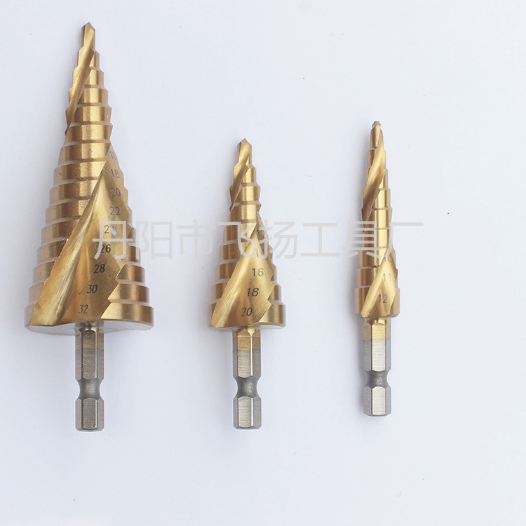 名稱:高速鋼4241鍍鈦螺旋槽階梯鉆3件套