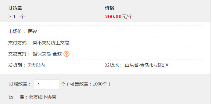 產(chǎn)品價格¥200.00元/個