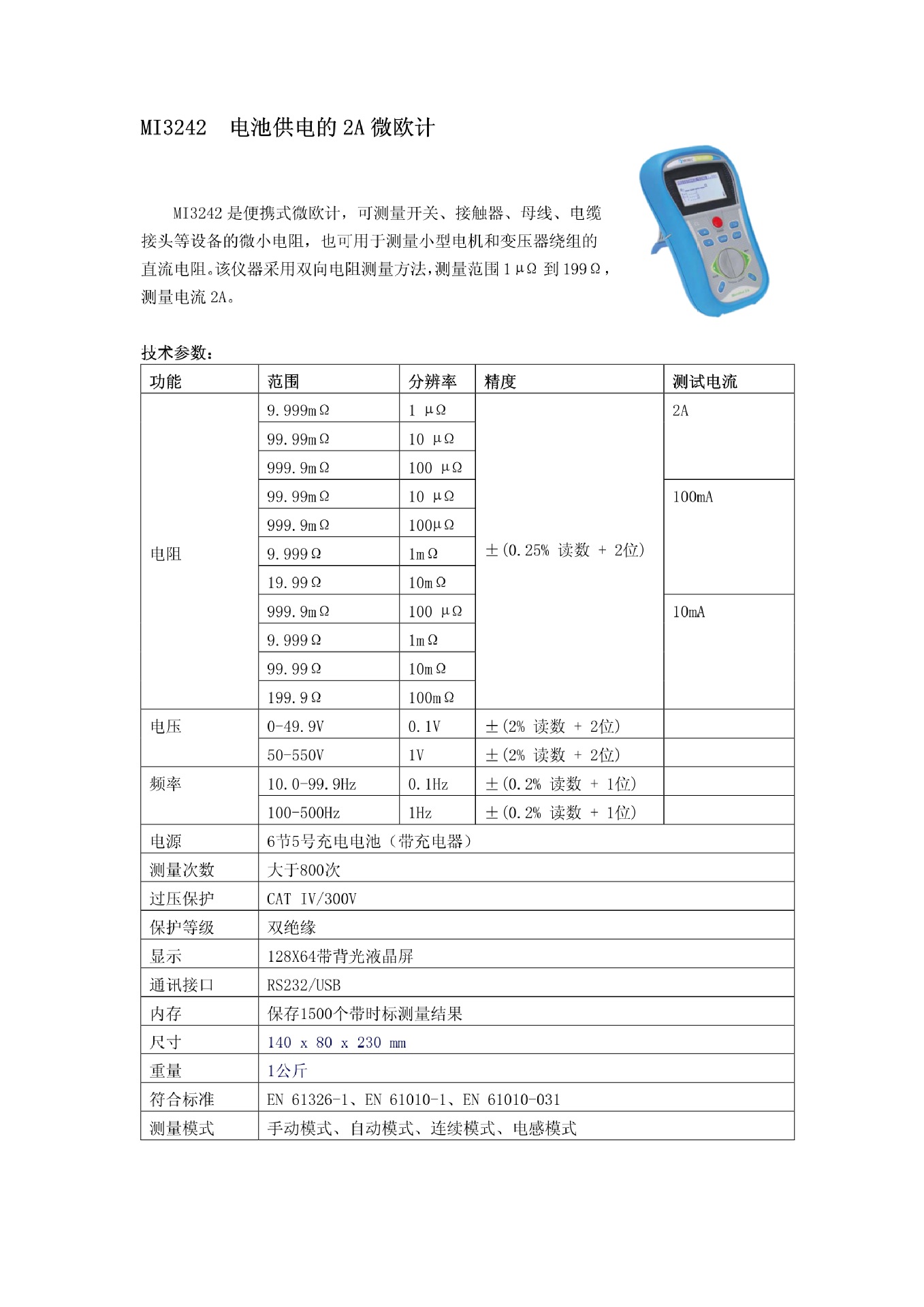 MI3242 微歐計 德國美翠微歐計 電池供電的 2A 微歐表