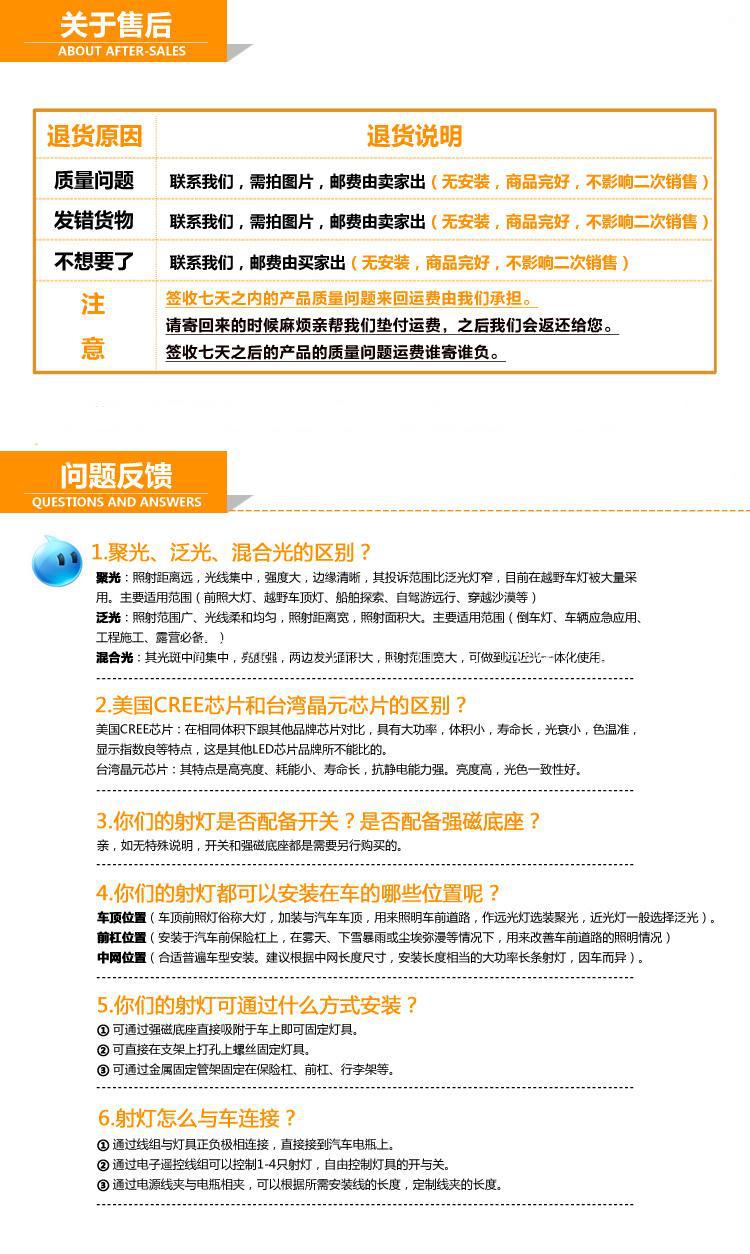 (特別提示:凡裝過車的一律不接受退貨,請各位買家知悉。<弱弱的問一句:如果發(fā)給你的是一套裝車用過的燈,您會(huì)接受嗎?>)