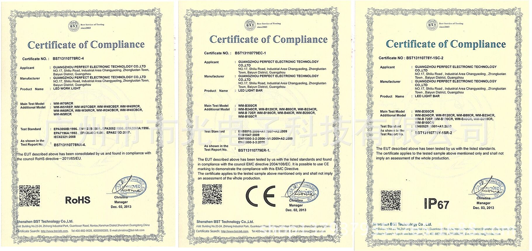 . 公司產(chǎn)品通過歐盟防水認(rèn)證、CE認(rèn)證、環(huán)保認(rèn)證(RoHs),防水等級(jí)達(dá)到IP67。