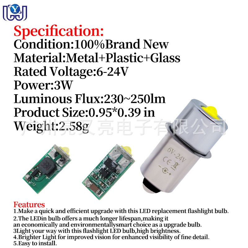 >產(chǎn)品供應(yīng)> HVAC汽車(chē)>車(chē)身件>汽車(chē)燈具>AC/DC LED小燈泡 P13.5S 3W超高亮燈珠3V 4.5V 6-24V 手電筒燈泡 T5 儀表燈系列 T10 系列 E10系列 BA9S 系列 裝飾燈系列 霧燈系列 工作燈系列 大燈系列 T15 T16 系列 室內(nèi)燈