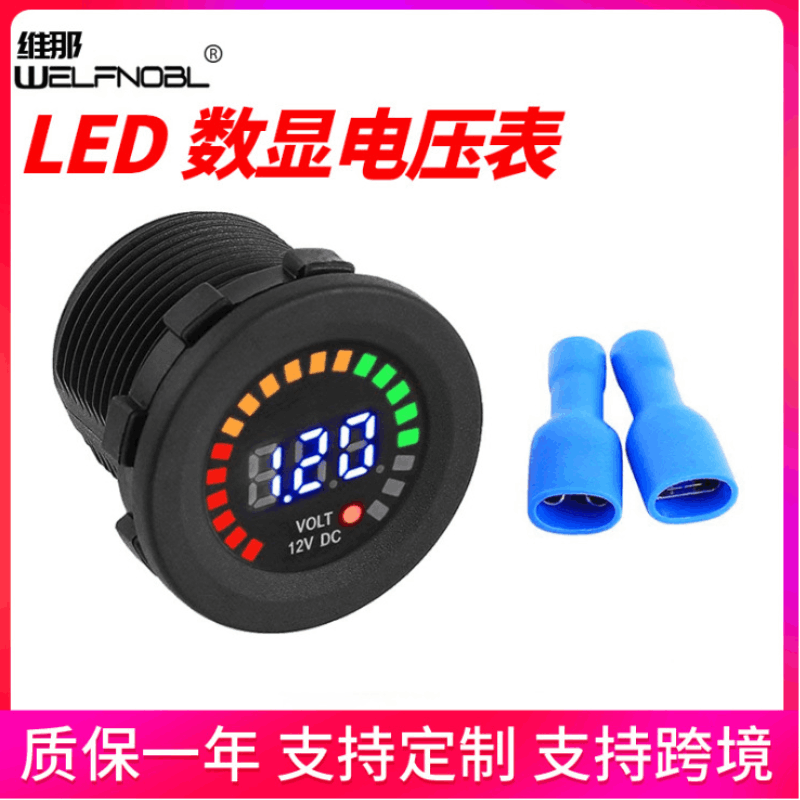 車用儀表 新款12V彩屏汽車房車改裝電壓表 個(gè)性直流電LED數(shù)顯面屏