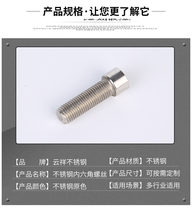 立即發(fā)布求購(gòu)意向本網(wǎng)頁(yè)所展示的有關(guān)【304不銹鋼杯頭內(nèi)六角螺絲DIN931圓柱頭內(nèi)六角螺栓螺釘M3-M12_螺絲_東臺(tái)市云祥不銹鋼制品有限公司】的信息/圖片/參數(shù)等由全球零部件網(wǎng)的會(huì)員【東臺(tái)市云祥不銹鋼制品有限公司】提供,由全球零部件網(wǎng)會(huì)員【東臺(tái)市云祥不銹鋼制品有限公司】自行對(duì)信息/圖片/參數(shù)等的真實(shí)性、準(zhǔn)確性和合法性負(fù)責(zé),本平臺(tái)(本網(wǎng)站)僅提供展示服務(wù),請(qǐng)謹(jǐn)慎交易,因交易而產(chǎn)生的法律關(guān)系及法律糾紛由您自行協(xié)商解決,本平臺(tái)(本網(wǎng)站)對(duì)此不承擔(dān)任何責(zé)任。您在本網(wǎng)頁(yè)可以瀏覽【304不銹鋼杯頭內(nèi)六角螺絲DIN931圓柱頭內(nèi)六角螺栓螺釘M3-M12_螺絲_東臺(tái)市云祥不銹鋼制品有限公司】有關(guān)的信息/圖片/價(jià)格等及提供【304不銹鋼杯頭內(nèi)六角螺絲DIN931圓柱頭內(nèi)六角螺栓螺釘M3-M12_螺絲_東臺(tái)市云祥不銹鋼制品有限公司】的商家公司簡(jiǎn)介、聯(lián)系方式等信息。