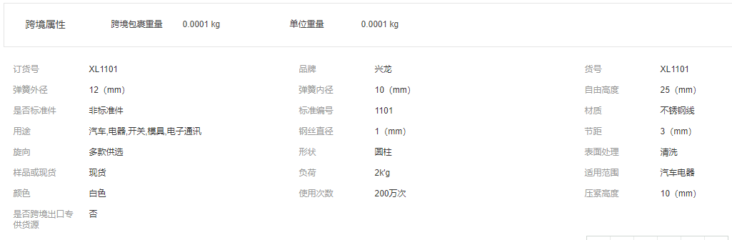 本網(wǎng)頁所展示的有關(guān)【非標(biāo)定做 異形不銹鋼壓縮彈簧 壓簧 扭簧 玩具五金配件拉伸彈簧_壓縮彈簧_天津興龍彈簧制造有限公司】的信息/圖片/參數(shù)等由全球零部件網(wǎng)的會員【天津興龍彈簧制造有限公司】提供,由全球零部件網(wǎng)會員【天津興龍彈簧制造有限公司】自行對信息/圖片/參數(shù)等的真實(shí)性、準(zhǔn)確性和合法性負(fù)責(zé),本平臺(本網(wǎng)站)僅提供展示服務(wù),請謹(jǐn)慎交易,因交易而產(chǎn)生的法律關(guān)系及法律糾紛由您自行協(xié)商解決,本平臺(本網(wǎng)站)對此不承擔(dān)任何責(zé)任。您在本網(wǎng)頁可以瀏覽【非標(biāo)定做 異形不銹鋼壓縮彈簧 壓簧 扭簧 玩具五金配件拉伸彈簧_壓縮彈簧_天津興龍彈簧制造有限公司】有關(guān)的信息/圖片/價格等及提供【非標(biāo)定做 異形不銹鋼壓縮彈簧 壓簧 扭簧 玩具五金配件拉伸彈簧_壓縮彈簧_天津興龍彈簧制造有限公司】的商家公司簡介、聯(lián)系方式等信息。